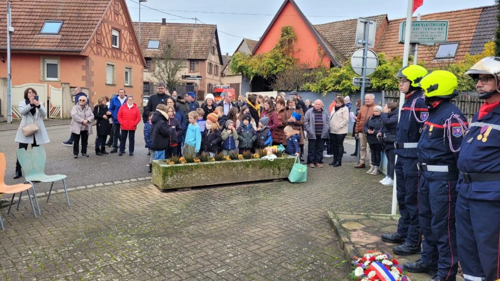 En amont, le jeudi 13 novembre, Madame le Maire s’est rendue à l’école afin d’expliquer aux élèves la signification du 11 novembre et les symboles de la République. Chaque enfant a reçu un bleuet, et la rencontre s’est terminée par le chant de La Marseillaise.