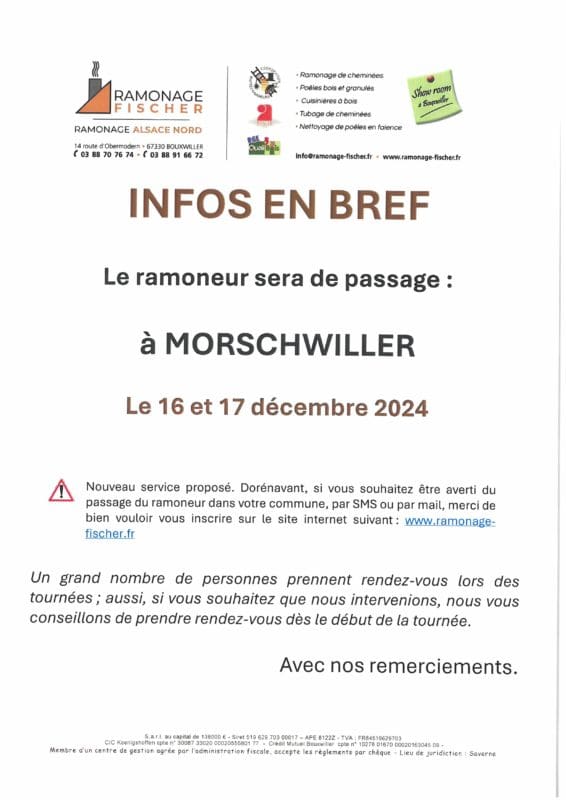 Passage du ramoneur le 16 et 17 décembre